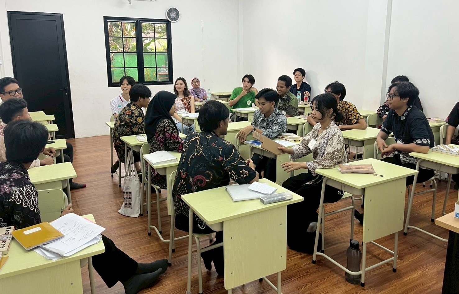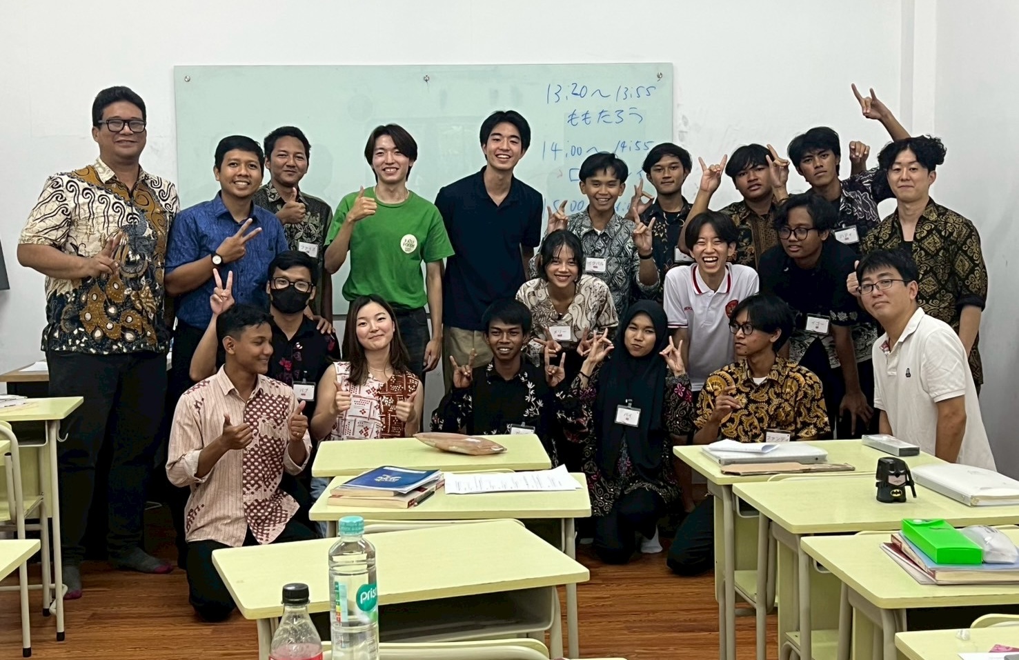 午後は Terakoya(インドネシア総研が運営する日本語教室) を訪問しました。ここでは現地の学生たちが日本語を学んでおり、その熱心さと笑顔に参加者は強く心を打たれました。