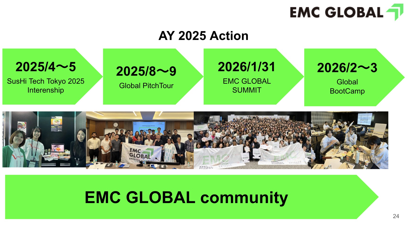 トークセッションの後は、EMC GLOBALの2025年度の活動紹介が行われました。