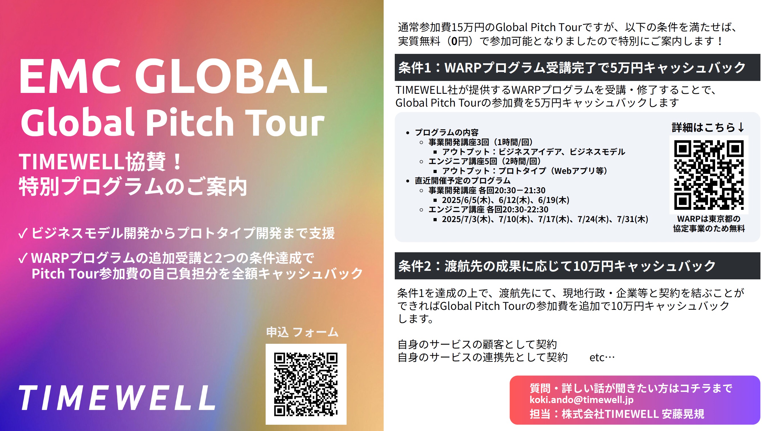 📩 WARPプログラムについて:koki.ando@timewell.jp(TIMEWELL 安藤)