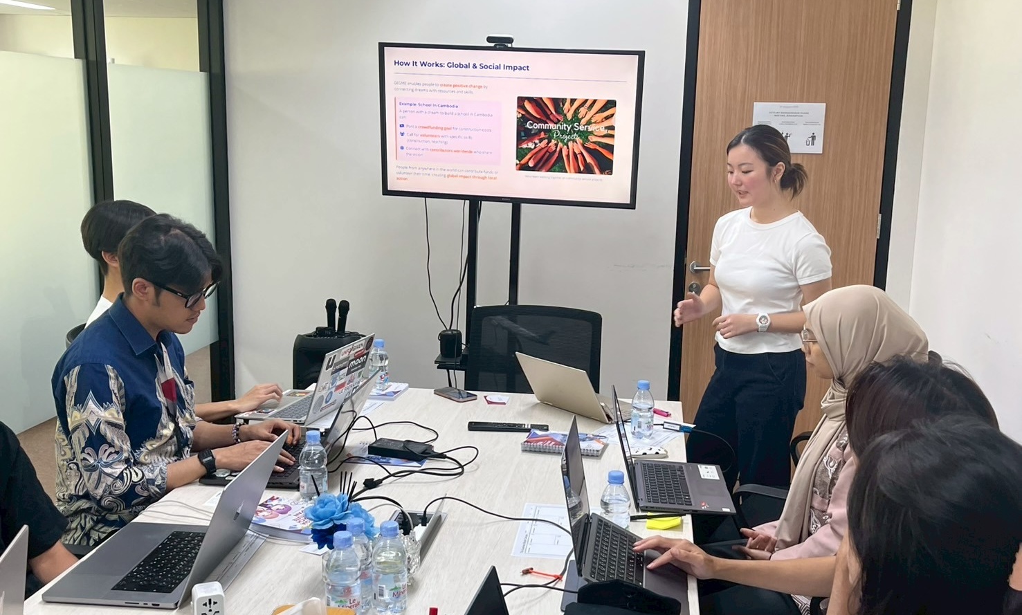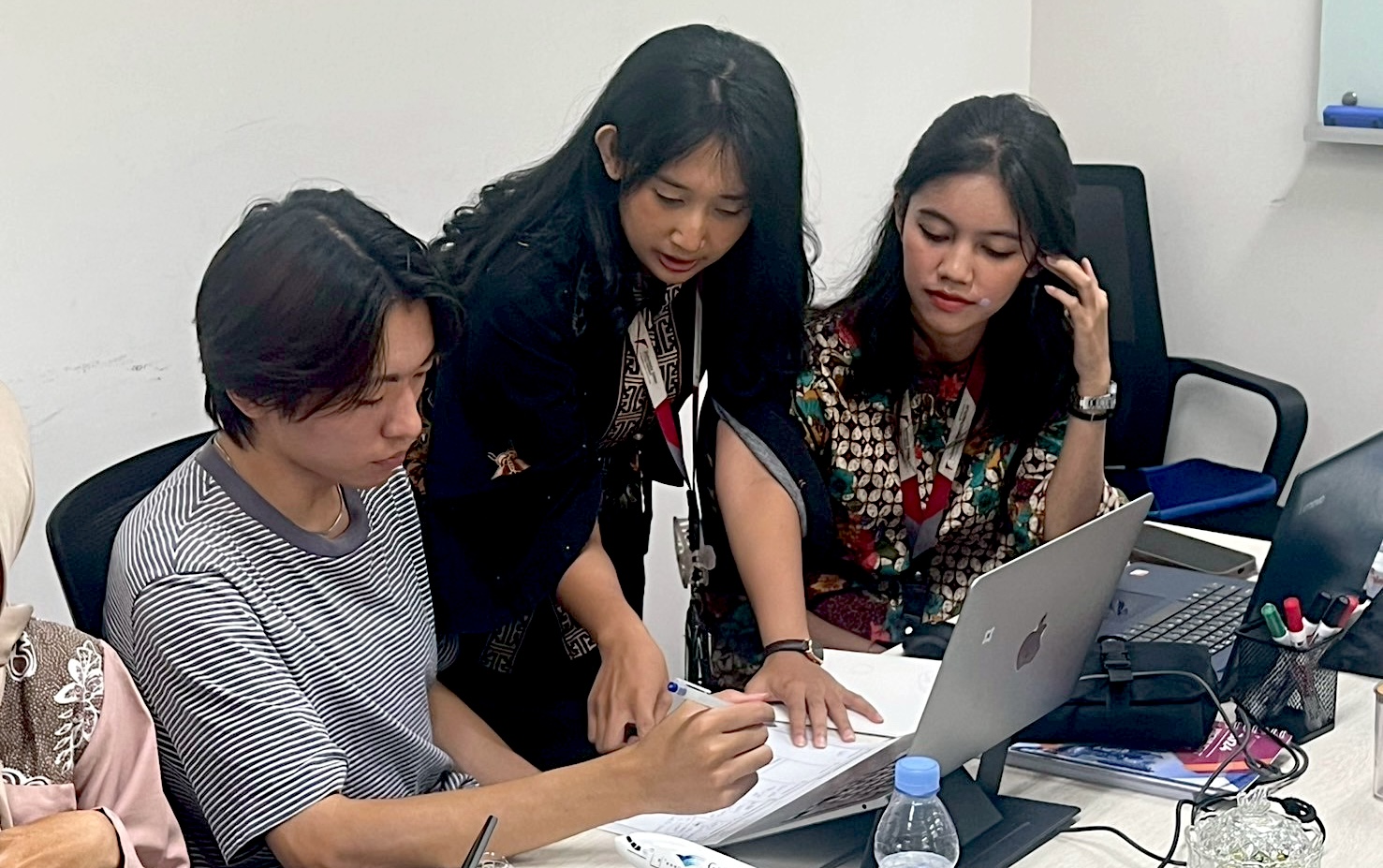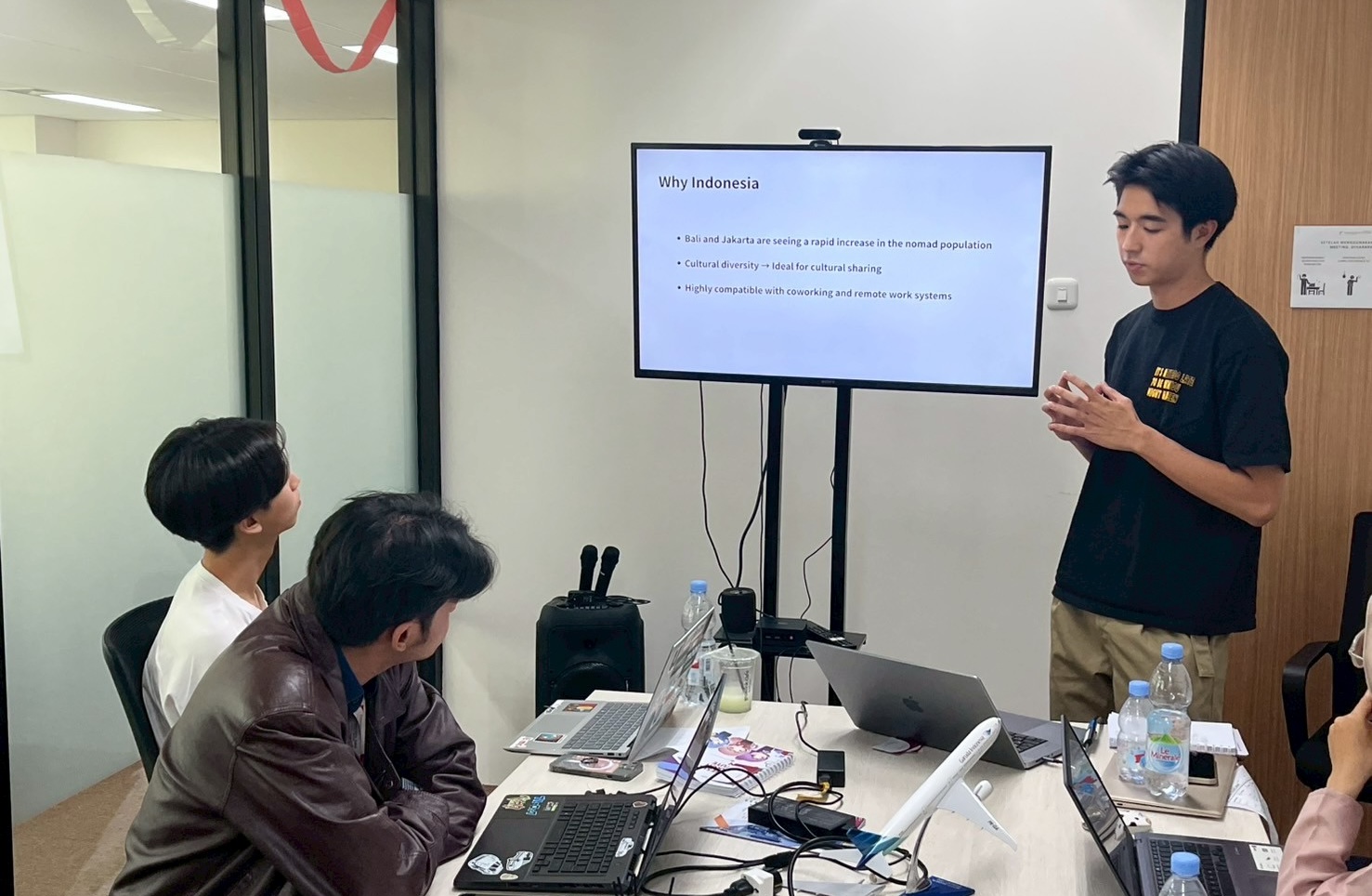 2日目は、インドネシア総研(Indonesia Research Institute)を訪問しました。午前中は学生たちが英語で自らのビジネスプランをピッチし、その後は現地社員の方々とバディを組み、約3時間にわたるインタビュー調査やフィードバックセッションを行いました。